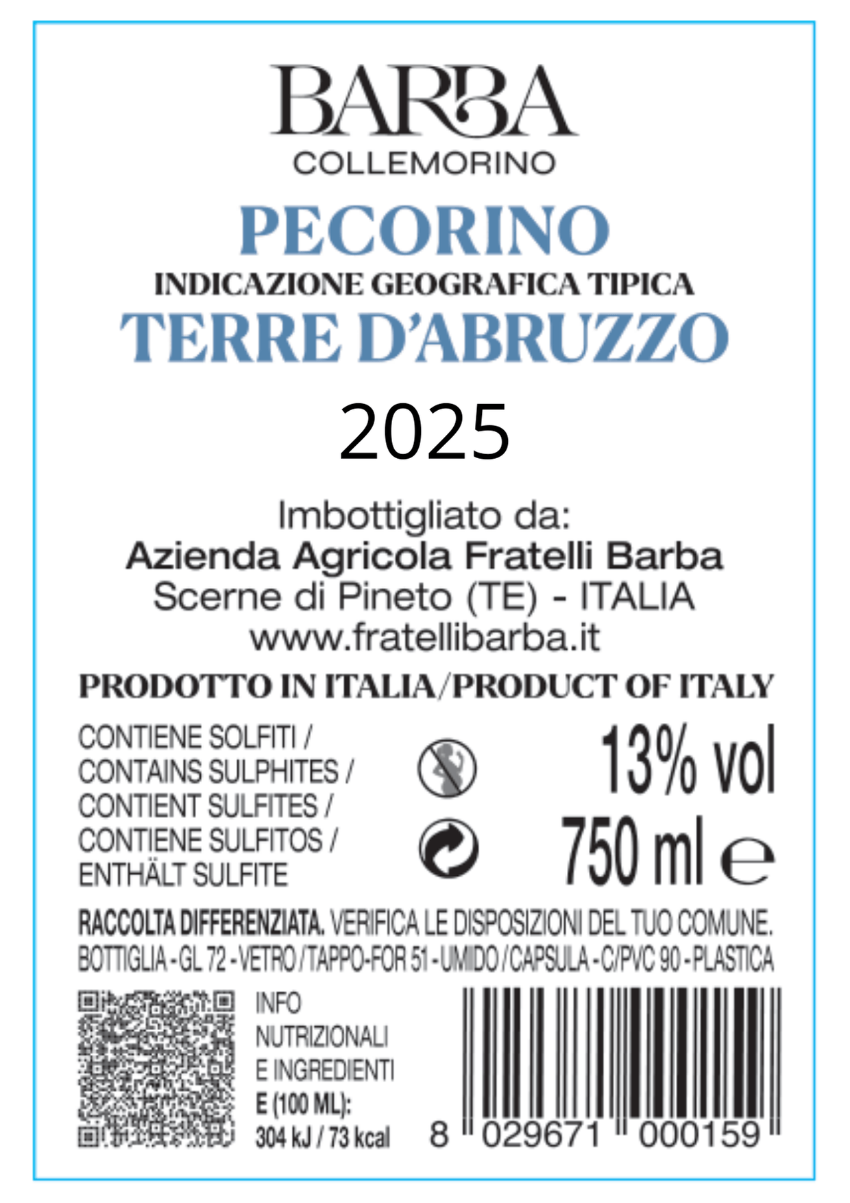 IMBOTTIGLIATO DA AZIENDA AGRICOLA FRATELLI BARBA – SCERNE DI PINETO (TE) – ITALIA